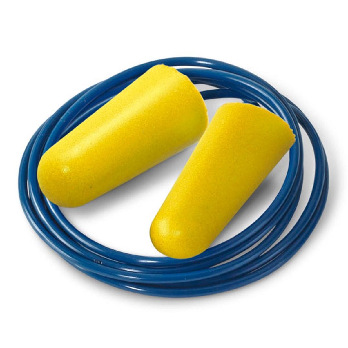 Ühekordselt kasutatavad ja aeglaselt taastuva vahuga kõrvatropid nööriga, mis kaitsevad kõrvu kõrget müra eest.
