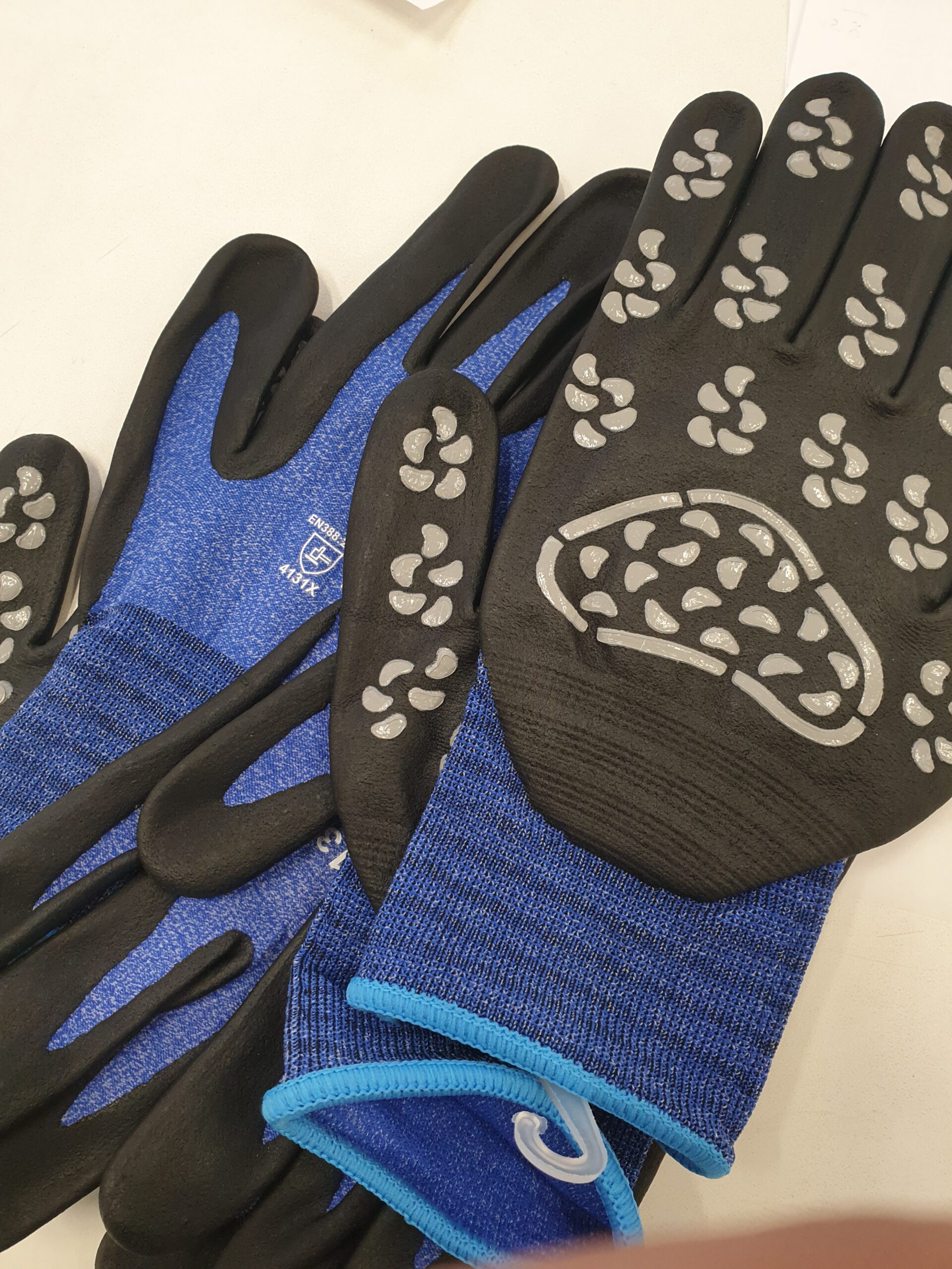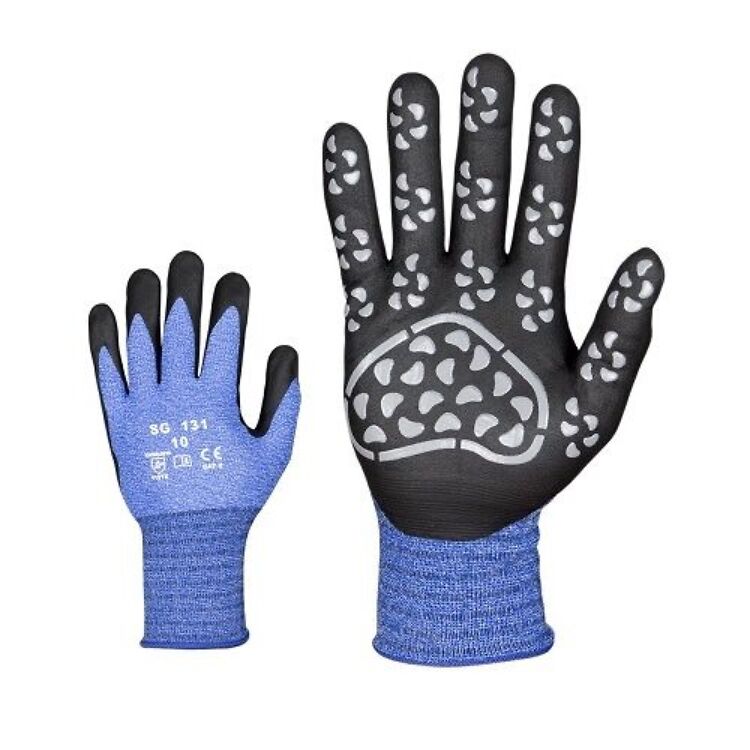 nailon/spandex töökindad, vahtnitriilkummiga kaetud peopesa ja sõrmeotsad